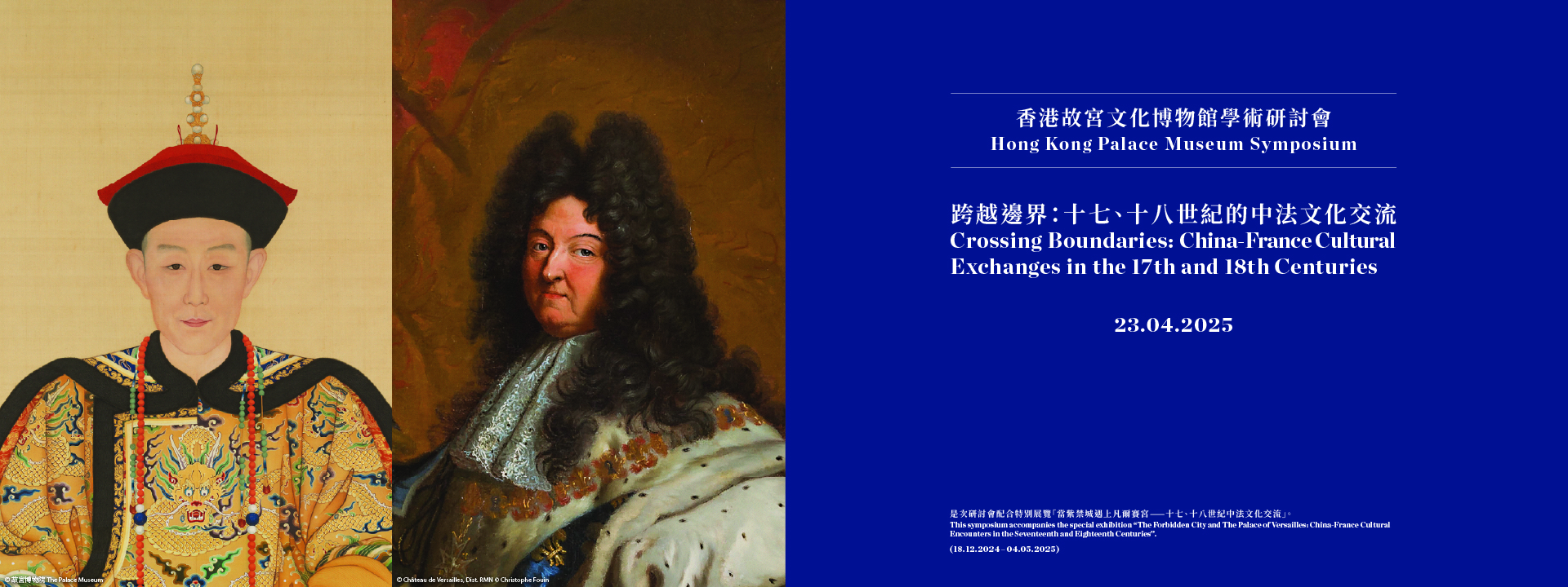 由香港故宫文化博物馆、故宫博物院、凡尔赛宫联合主办的 ”当紫禁城遇上凡尔赛宫──十七、十八世纪中法文化交流” 特别展览于2024年12月18日至2025年5月4日在香港故宫文化博物馆举办。学术研讨会将配合是次特展邀请香港、内地与国际专家学者,深入探讨十七、十八世纪中国与法国宫廷的文化交流和互鉴。这些交流涵盖科学、艺术等多个领域,不仅影响了两国宫廷之间的知识学习及审美趣味,还塑造了双方对彼此的认知与想象 。