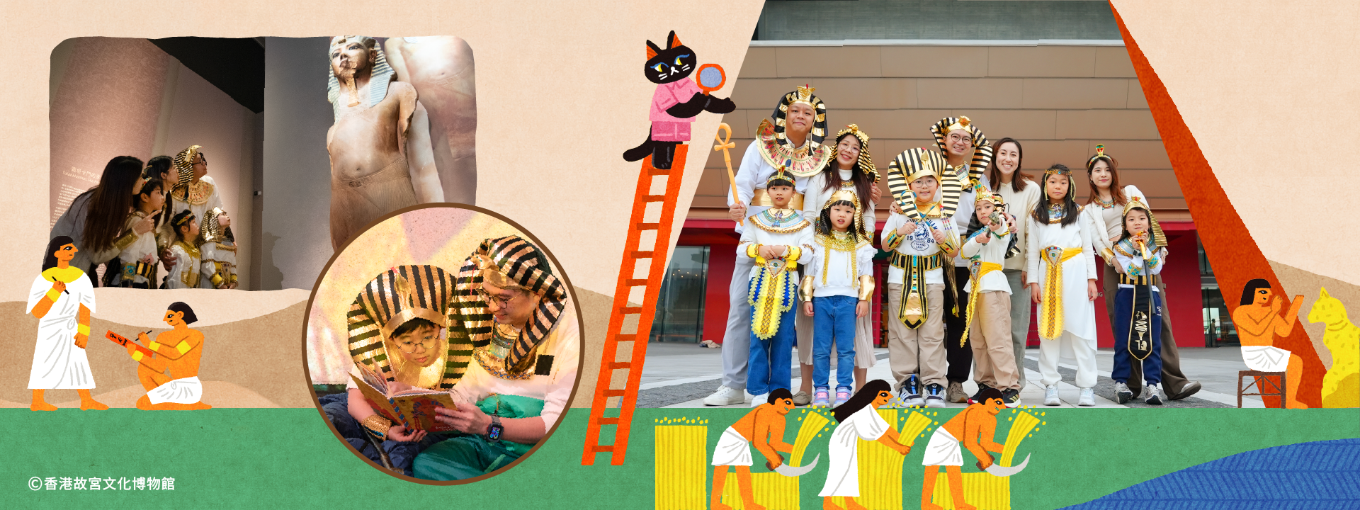 參加者將在巴斯特和古埃及人的帶領下,從有趣的古埃及傳統遊戲及角色扮演體驗中探索古埃及文化,解開金字塔與聖書體的奇妙奧秘。