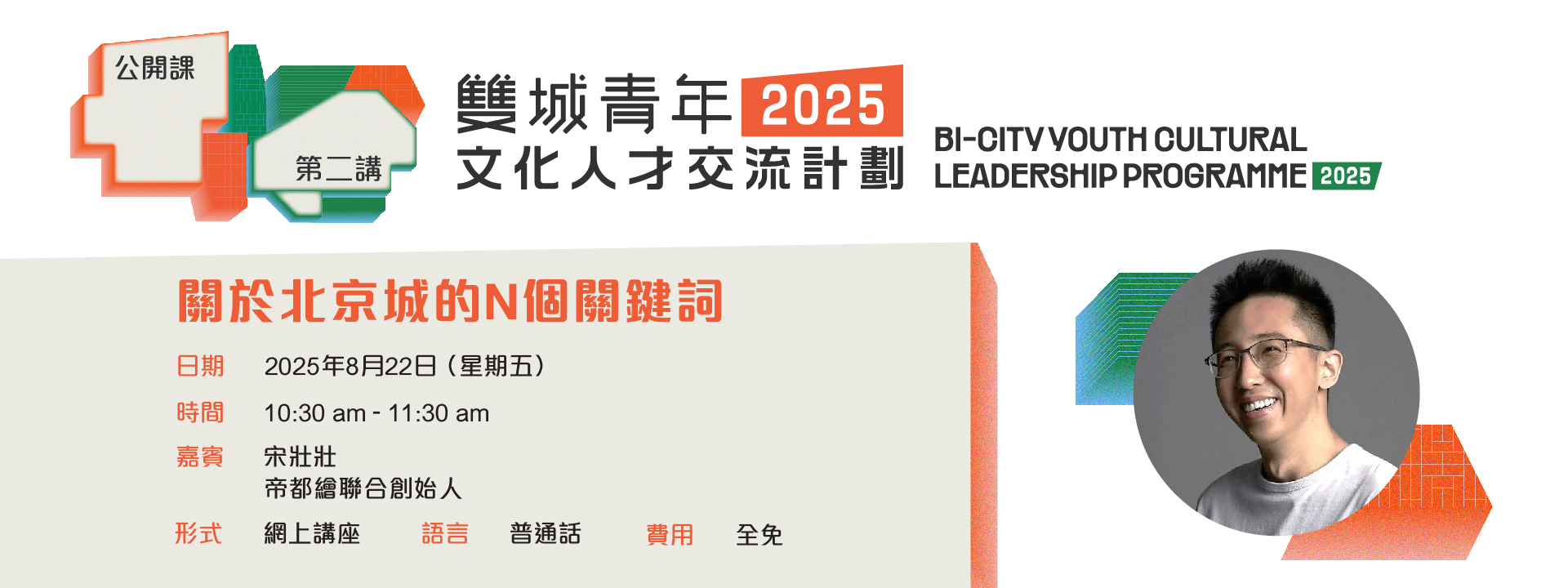 在宋壯壯眼中,城市就像一張遊戲地圖,每個人都可以按照自己的方式,有不同的探索路徑與玩法。在本次公開課中,他將以「N 個關鍵詞」為線索,帶領大家從另一種角度,重新認識北京的文化與故事。 歡迎任何人士報名參加,請預先登記。
